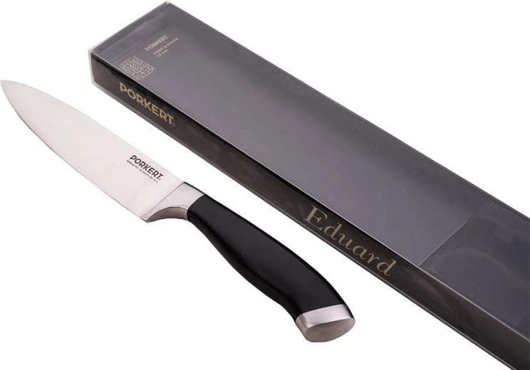De universele koksmes EDUARD met een lemmetlengte van 15 cm zorgt voor precies en comfortabel snijden. Dankzij het X50CrMoV15-staal en een hardheid van HRC 55 ±2 is het lemmet scherp en duurzaam, terwijl het ergonomische, gepolijste handvat uitstekend in de hand ligt voor veilig en comfortabel gebruik.