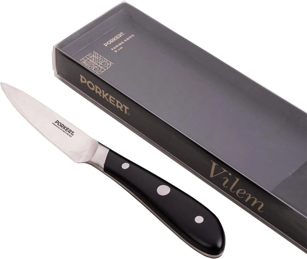 Het uitsnijmes Vilem is een ideale hulp voor dagelijks keukengebruik. Het korte lemmet van 9 cm, gemaakt van X50CrMoV15-staal (ISO 1.4116), biedt een uitstekende balans tussen scherpte en duurzaamheid, waardoor snijden, schoonmaken en decoreren van fruit en groenten moeiteloos gaat.