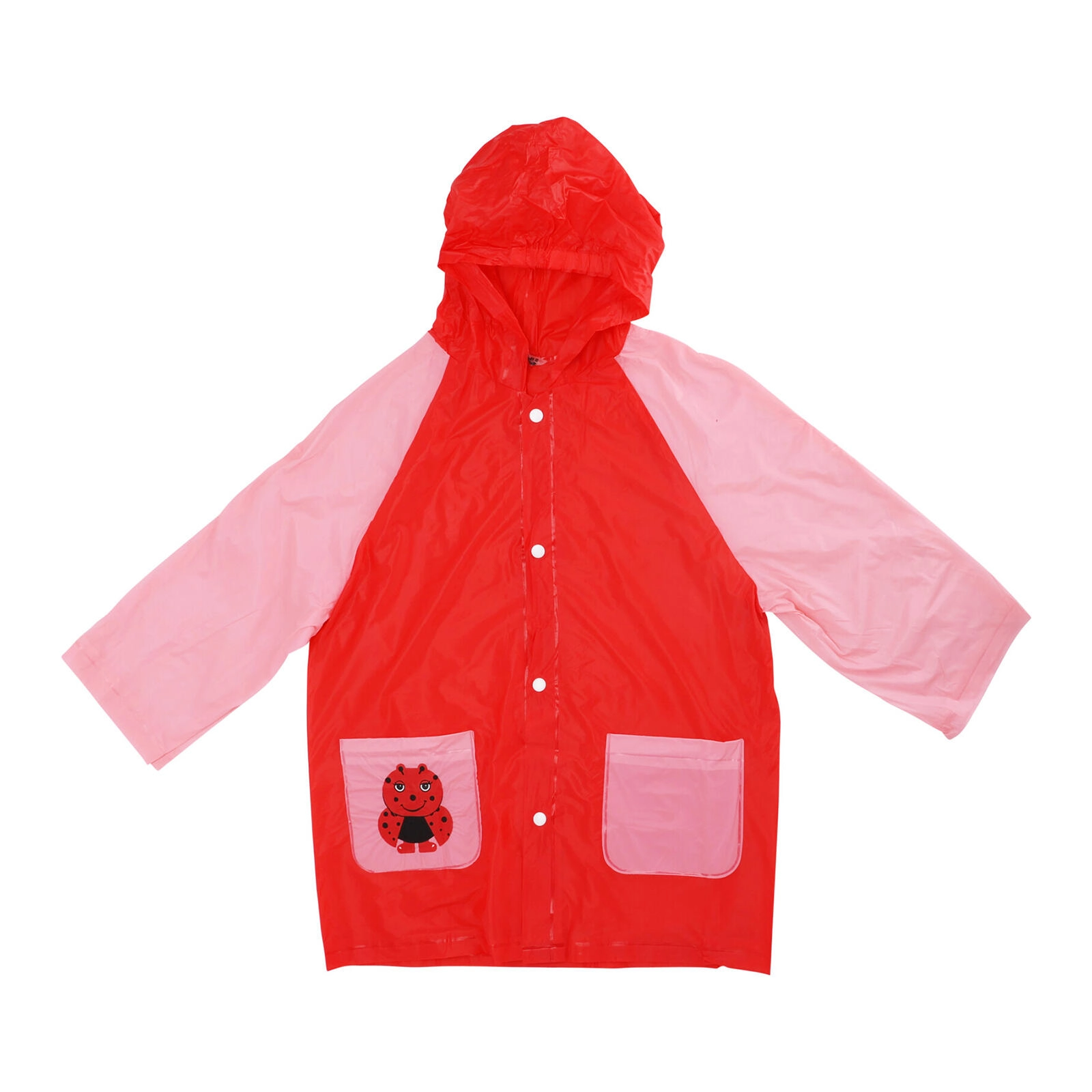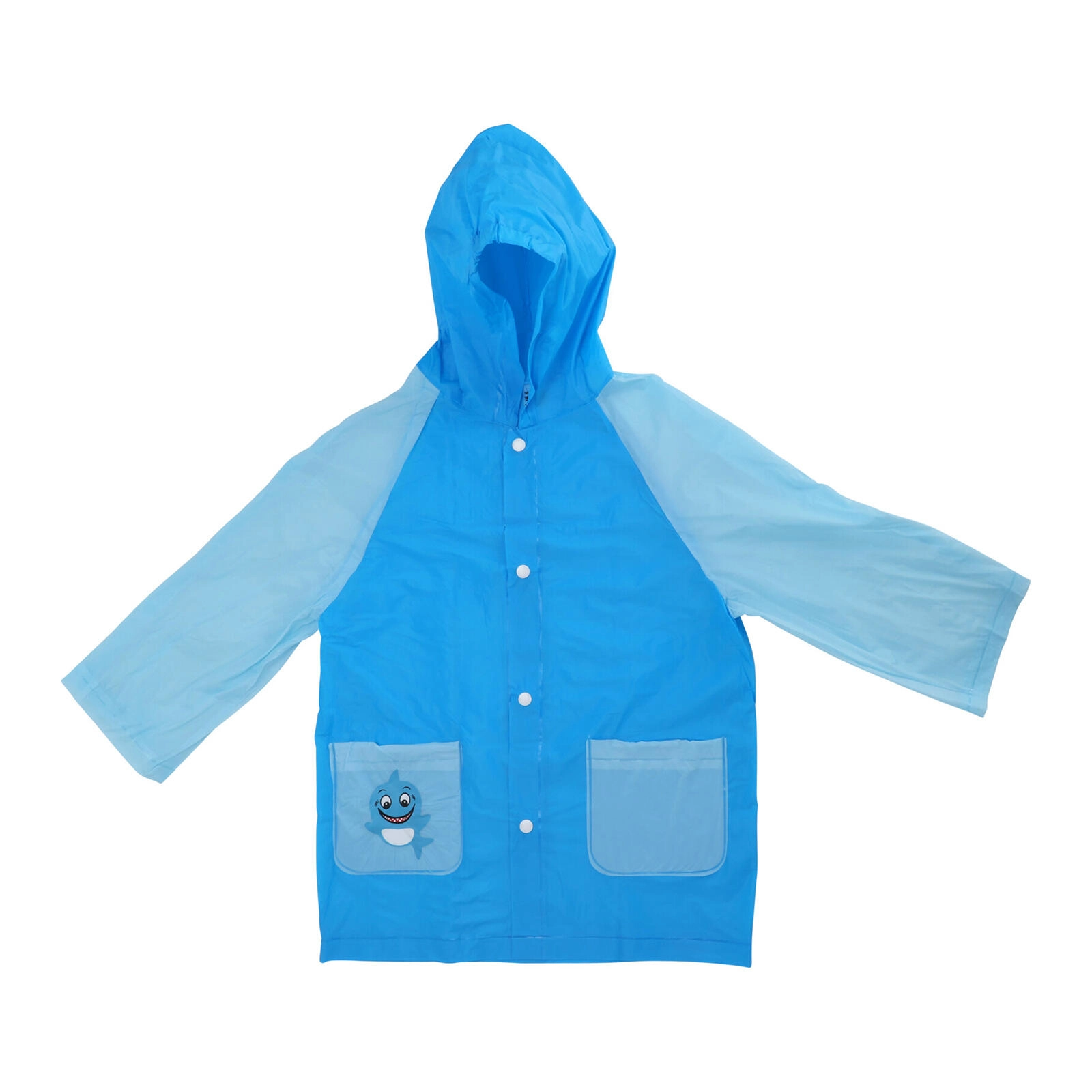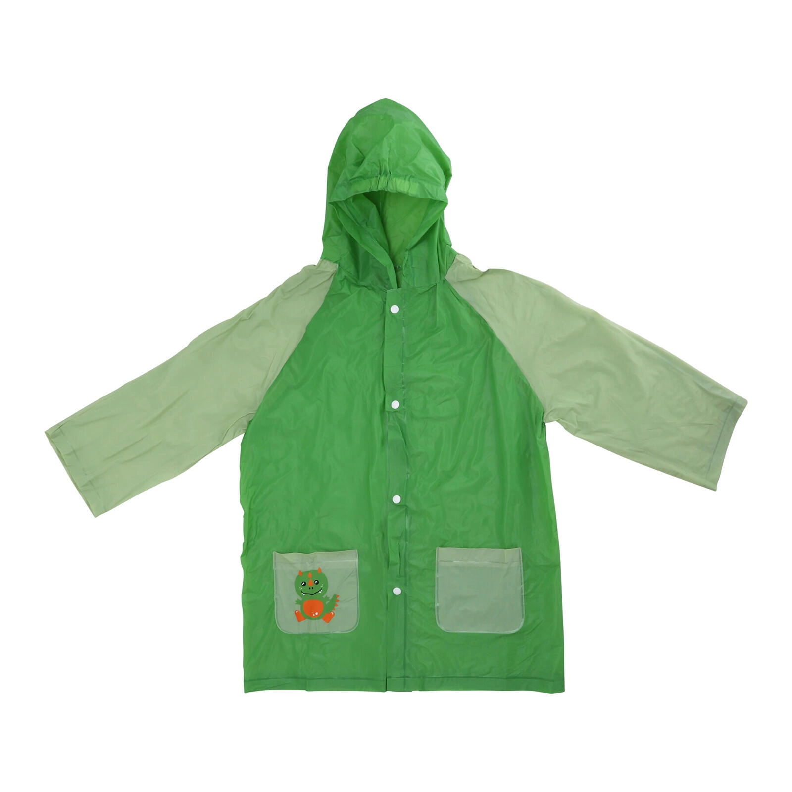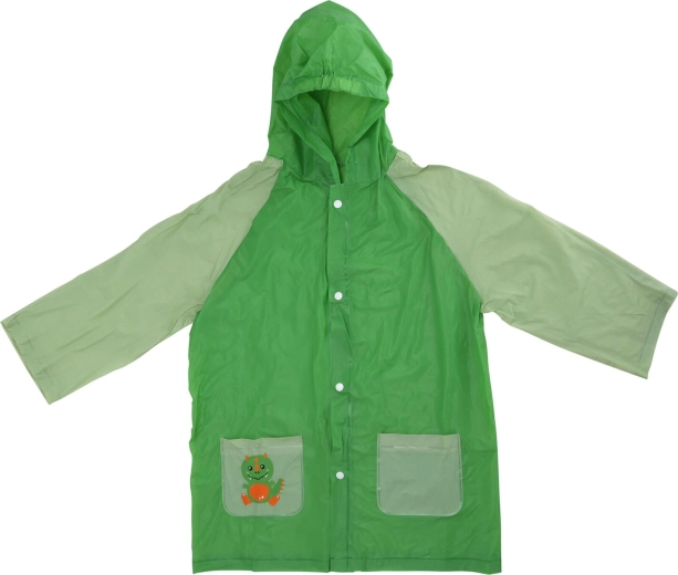 Betrouwbaar PVC en een capuchon houden kinderen droog, zelfs bij stevige regen. Drukknopen over de volledige lengte maken aankleden gemakkelijk.