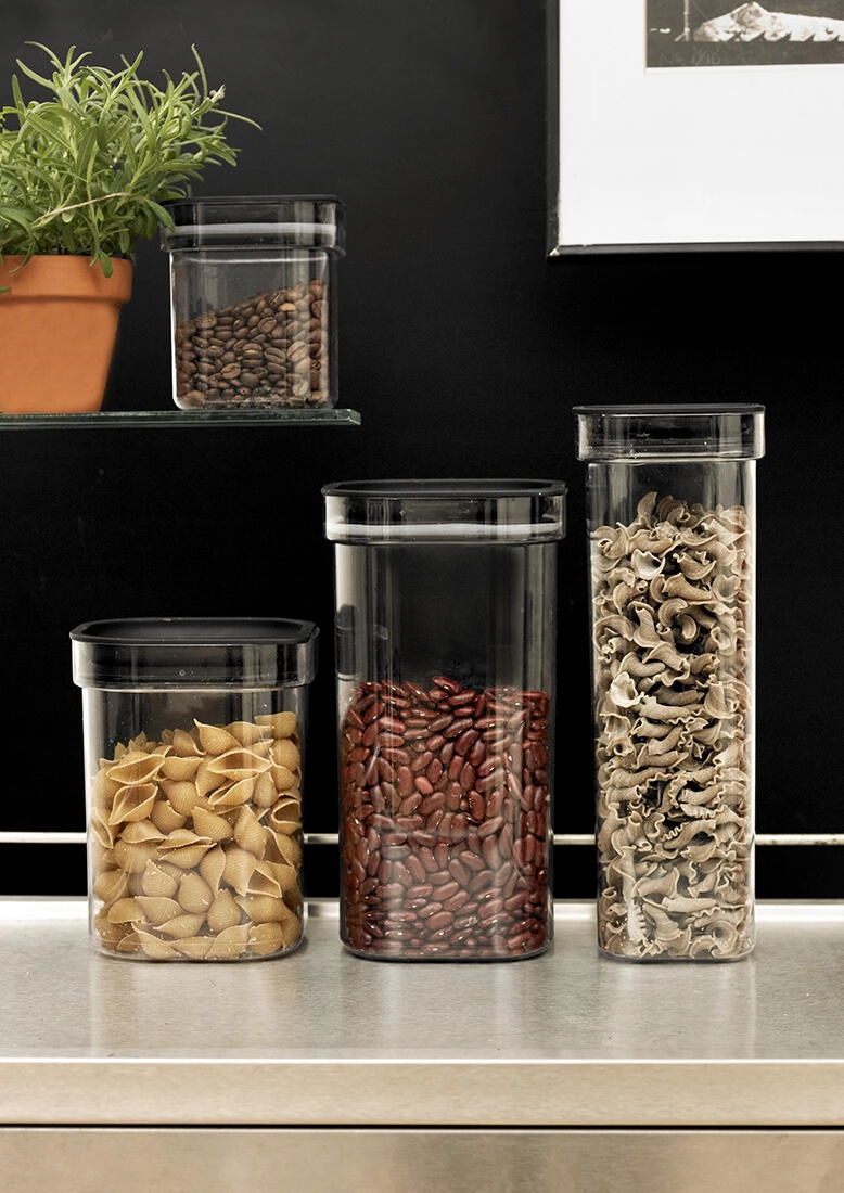 Het compacte, vierkante grondvlak en het vlakke deksel maken veilig stapelen mogelijk en helpen de voorraadkast efficiënt te organiseren.