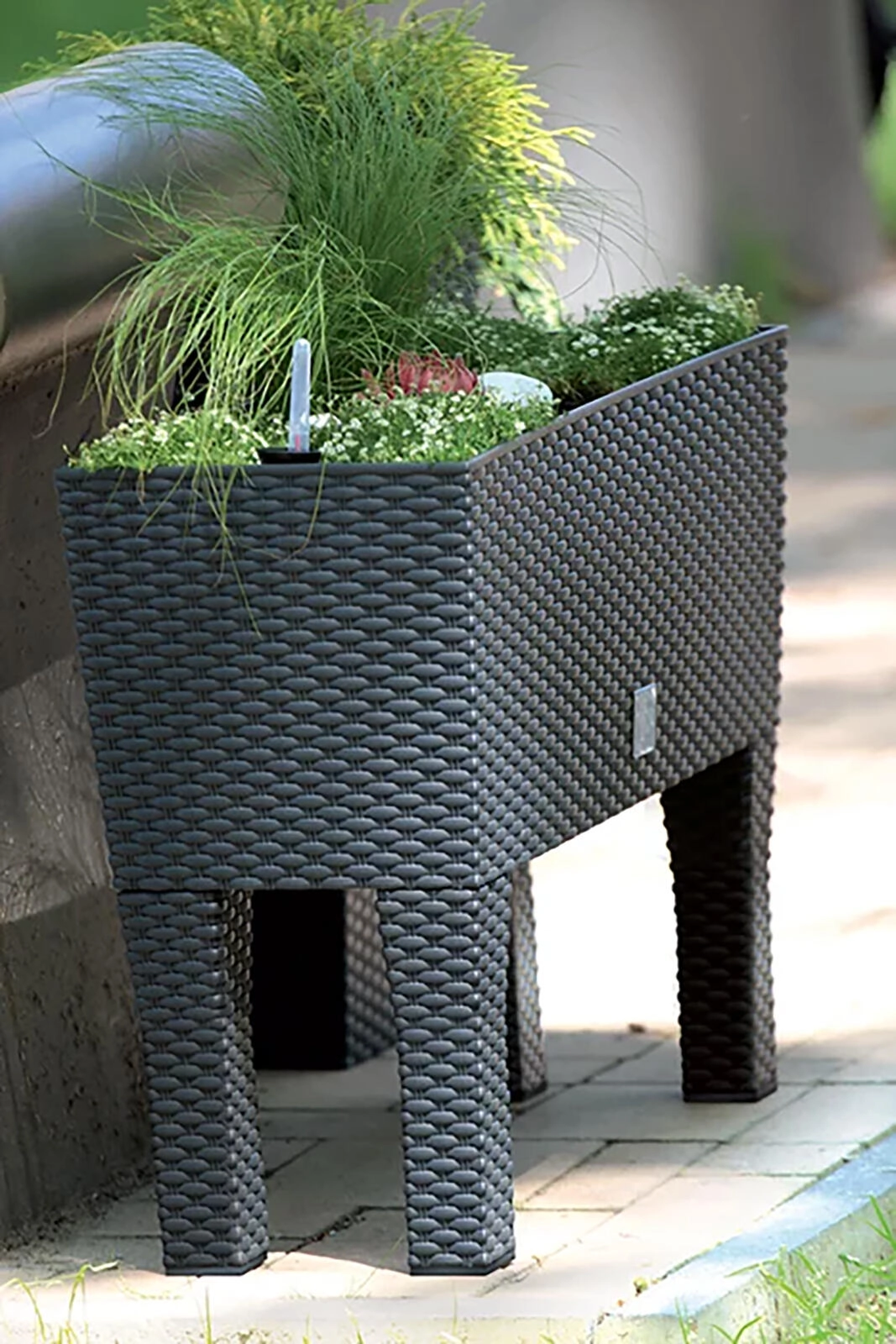 Geniet van weelderig groen op je balkon, terras en in huis met de verhoogde bloembak Rato Case High in moderne antraciet. Dankzij het elegante rotanontwerp past hij perfect in elke ruimte en maakt de verhoogde constructie werken zonder onnodig bukken mogelijk.
