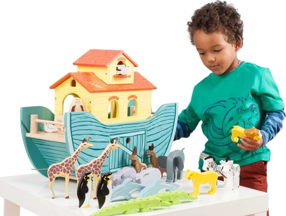 De betoverende Noachs ark van Le Toy Van biedt een unieke manier voor kinderen om kennis te maken met het verhaal van Noachs ark en ondertussen creatief te spelen. Deze grote ark bevat tien paren handgeschilderde dieren en menselijke figuren, afgewerkt met milieuvriendelijke verven. De ark is voorzien van een uitschuifbaar paneel aan de voorkant en scharnierende deuren aan de zijkant voor gemakkelijke toegang tot de figuurtjes.
