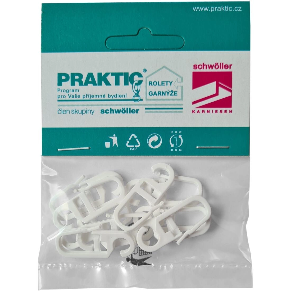 Praktische gordijnhaak van duurzaam kunststof in witte kleur voor eenvoudig bevestigen van gordijnen. Ideaal voor dagelijks gebruik, compatibel met gangbare systemen. Eenvoudige installatie, strak wit design en verpakking van 10 stuks voor complete montage van de rails.