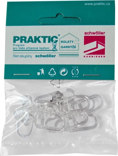 De haakjes zijn geschikt voor gangbare typen gordijnrails en ringen. Dankzij het stevige plastic zijn ze licht, duurzaam en eenvoudig in gebruik. De verpakking van 10 stuks is ideaal voor kleinere ramen of als aanvulling op een bestaande set.