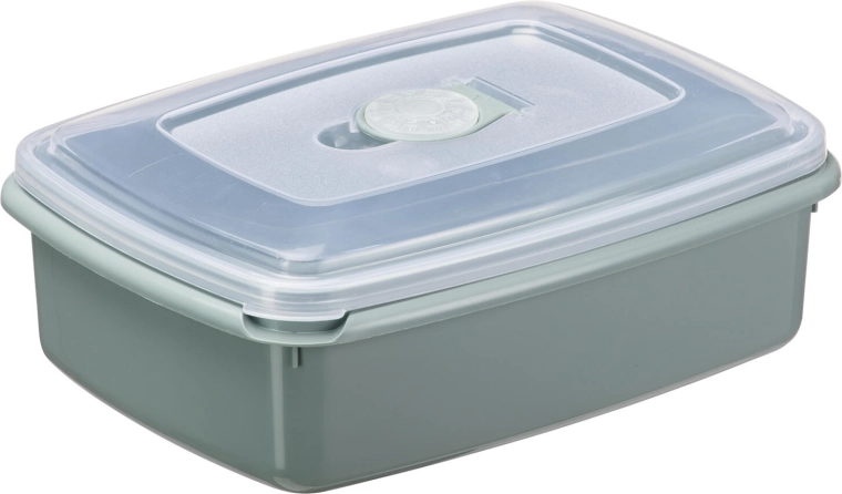 Praktische plastic bak met een inhoud van 1,3 l voor dagelijks gebruik in de keuken. Geschikt voor de magnetron, koelkast en vriezer, met een stoomventiel voor veilig opwarmen en een transparant deksel voor snelle controle van de inhoud. Dankzij de geïntegreerde datumring markeer je eenvoudig de bewaarmaand of houdbaarheidsdatum.