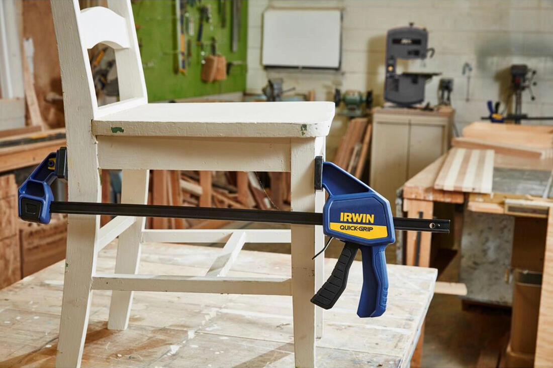 Robuuste eenhandige klem IRWIN QUICK-GRIP met een spanlengte van 450 mm levert tot 136 kg klemdruk voor zeker en snel klemmen. Dankzij bediening met één hand, het QUICK-CHANGE-systeem om om te bouwen tot spreider en oppervlaktevriendelijke beschermpads is hij ideaal voor houtbewerking, reparaties en montage.