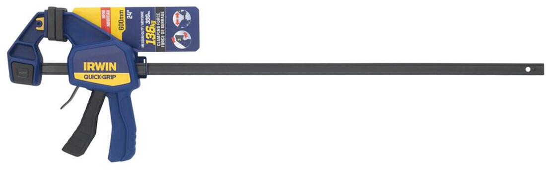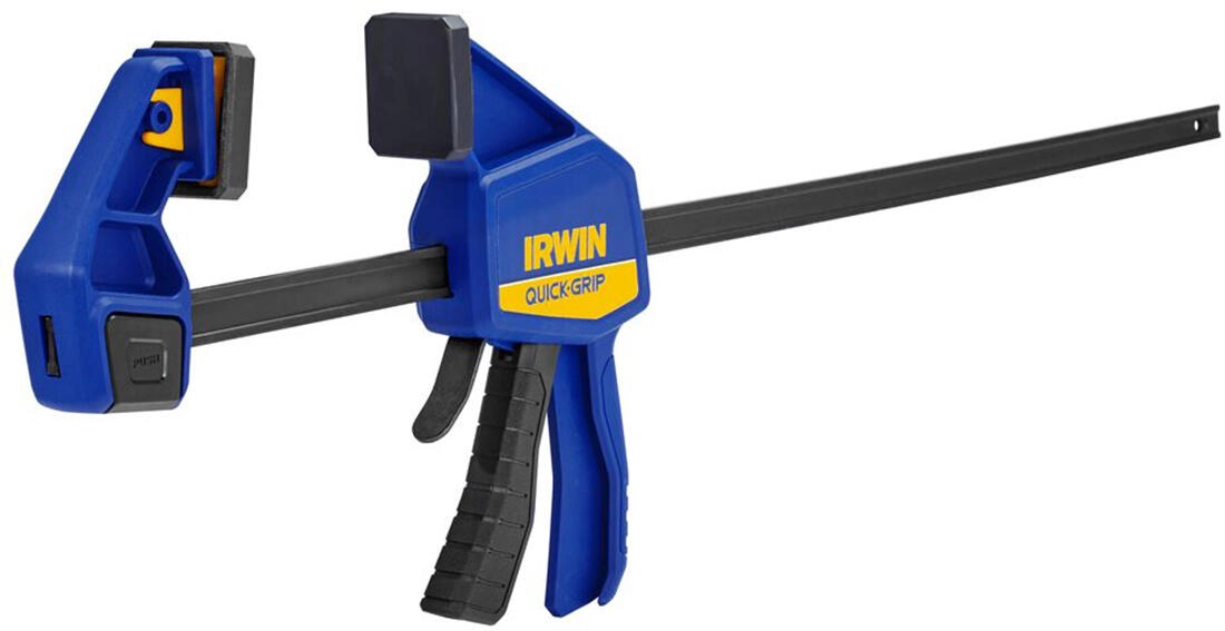 De IRWIN QUICK‑GRIP 600 mm is een betrouwbare houtbewerkingsklem die is ontworpen voor comfortabel bedienen met één hand. Hij biedt een hoge en constante klemdruk tot 136 kg, die dankzij de volledig vlakke pads gelijkmatig wordt verdeeld zonder ongewenste indrukken. De stijve I‑profielgeleiding van koolstofstaal met zwart geoxideerd oppervlak zorgt voor uitzonderlijke duurzaamheid en minder doorbuiging onder belasting.
