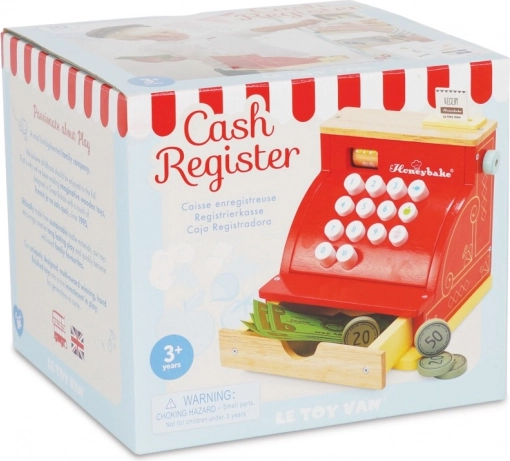 De rode houten kassa van LE TOY VAN uit de bekroonde Honeybake-collectie combineert hoogwaardige afwerking, veilige materialen en een charmante vintage look met gouden details. Ideaal voor winkeltje spelen en het ontwikkelen van sociale vaardigheden, creativiteit en basis rekenvaardigheden.