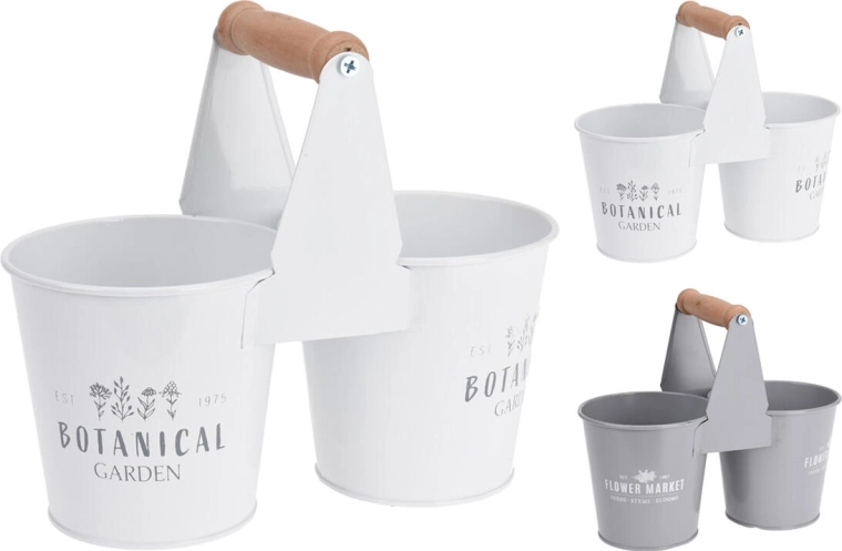 Stijlvolle dubbele metalen bloempot met een praktisch handvat die je interieur, balkon en tuin opfleurt. Verkrijgbaar in een mix van kleuren en decoraties en dankzij de compacte afmetingen geschikt voor vensterbanken en tafels. Licht metaal, smakelijke decoraties en eenvoudig te verplaatsen maken het een ideale accessoire voor kruiden, vetplanten en kleine bloemen.