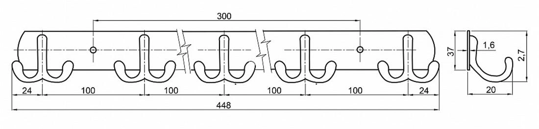 - Wandkapstok met vijf dubbele haken
