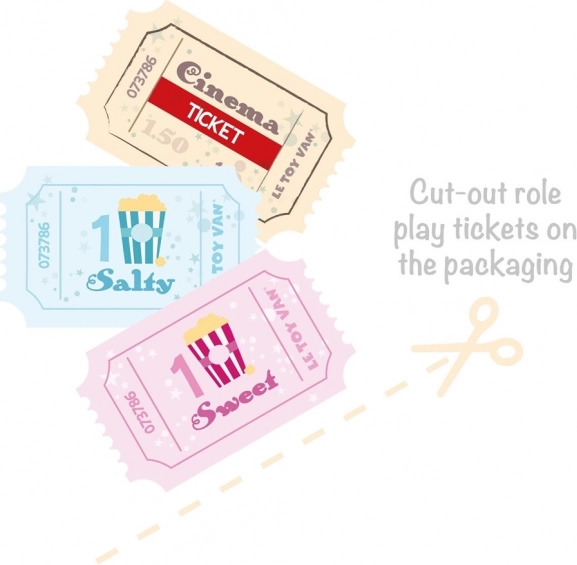 Inclusief bioscooptickets en kaartjes voor zoete/zoute popcorn, die spraak, cognitieve vaardigheden en rollenspel met vriendjes bevorderen.