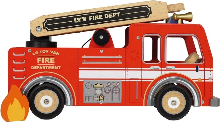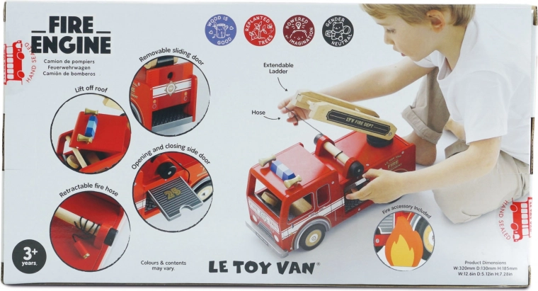 Kleine brandweerlieden gaan op pad in een veilig en duurzaam voertuig dat indruk maakt met authentieke details en de iconische rode kleur. De houten constructie uit duurzame bronnen, zorgvuldige handmatige afwerking en gladde randen zorgen elke dag voor comfortabel en veilig spelen.