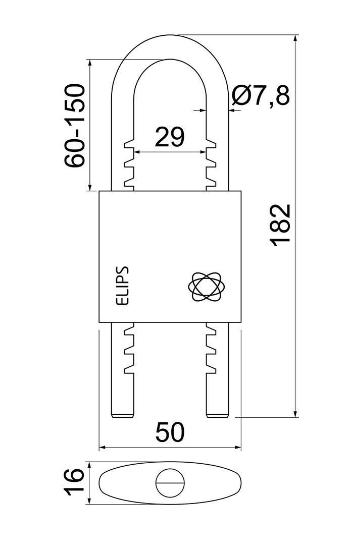 Hangslot ELIPS 50 met verstelbare beugel 60–150 mm, 3 sleutels