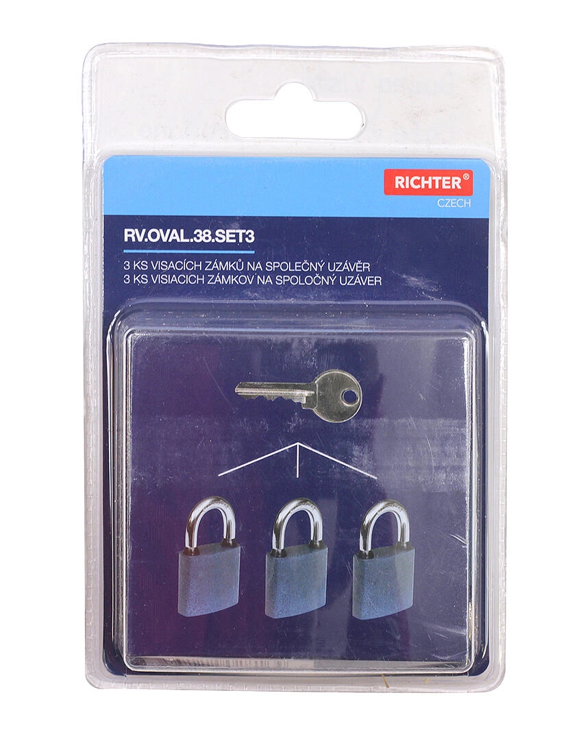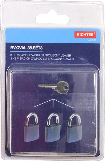 De OVAL 38 hangsloten-set is ideaal voor werkplaatsen, magazijnen, garages en huishoudens waar u meerdere sloten met één sleutel nodig hebt. De robuuste gietijzeren behuizing met blauwe poedercoating is slijtvast, terwijl de HARDENED beugel met twee vergrendelingspunten de bescherming tegen openbreken vergroot.
