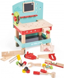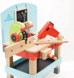 ‘Mijn eerste werkbank met gereedschap’ is ideaal voor kleine doe-het-zelvers die de wereld van gereedschappen en werkplaatsen willen ontdekken. Dit speelgoed is gemaakt van hoogwaardig FSC-hout, wat zowel duurzaamheid als milieuvriendelijkheid garandeert. Het bevat 20 onderdelen, waaronder een boor, cirkelzaag, klem, zaag, hamer, schroevendraaier en vele andere gereedschappen. Ook is er een krijtbord voor creatieve expressie.