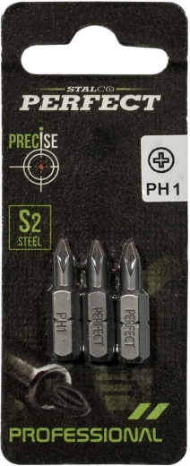 Kwalitatieve PHILLIPS PH1-bits met een lengte van 25 mm van het merk STALCO, in een praktische verpakking van 3 stuks. Ideaal voor gebruik met hand- en elektrisch gereedschap, zorgen voor een betrouwbare krachtoverdracht en precies schroeven in kruiskopschroeven type PH1.