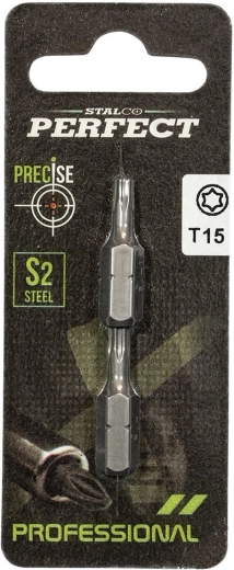 Kwalitatieve TORX-bits van het merk STALCO voor nauwkeurig schroefwerk in werkplaats en huishouden. De set bevat 2 stuks bits in maat T10 met een lengte van 25 mm, geschikt voor hand- en elektrische gereedschappen en zorgt voor een betrouwbare krachtoverbrenging.