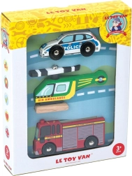 Stel je voor: de set reddingsvoertuigjes van Le Toy Van - het perfecte cadeau voor kinderen. Dit speelgoed ondersteunt fantasierijk spel met drie reddingsvoertuigen: helikopter, politieauto en brandweerwagen. Elk van hen is gemaakt van duurzaam rubberhout met ethisch verantwoord gebruik van niet-giftige waterbasisverf, wat zorgt voor veilige speeltijd.