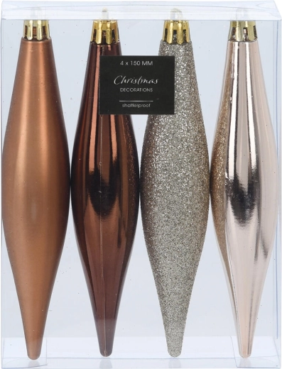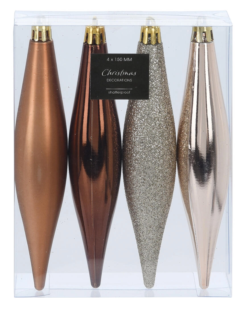 Breng je kerstdecor tot leven met tijdloze versieringen in de vorm van ijskegels. De bruin‑gouden mix van tinten geeft bomen, takken en kransen een warme en elegante uitstraling en combineert vanzelf met andere decoraties. De hoogte van 15 cm zorgt voor een duidelijk effect zonder een drukke indruk.