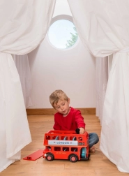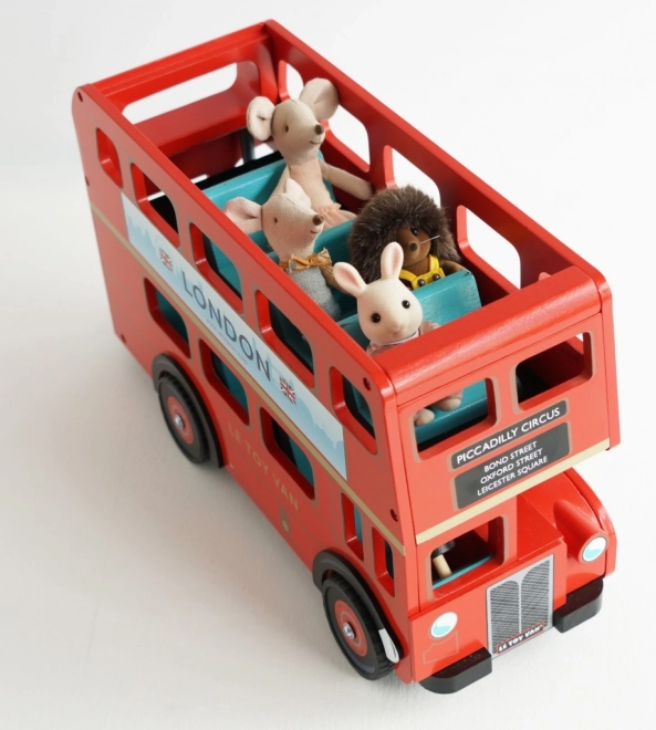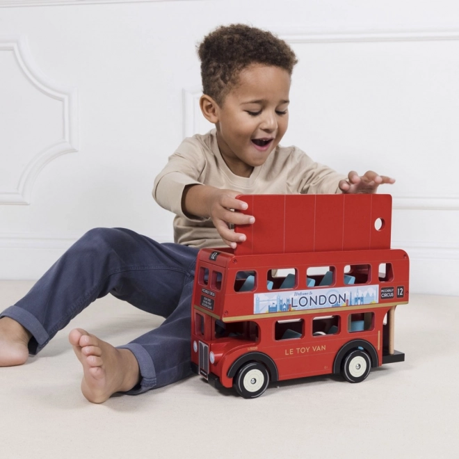 Ontdek de schoonheid van Londen met de houten dubbeldekkerbus van Le Toy Van. Dit iconische speelgoed, ontworpen met details zoals realistische markeringen en een afneembaar dak, biedt een geweldige manier om de verbeeldingskracht en fijne motoriek van kinderen te ontwikkelen.