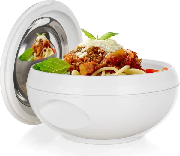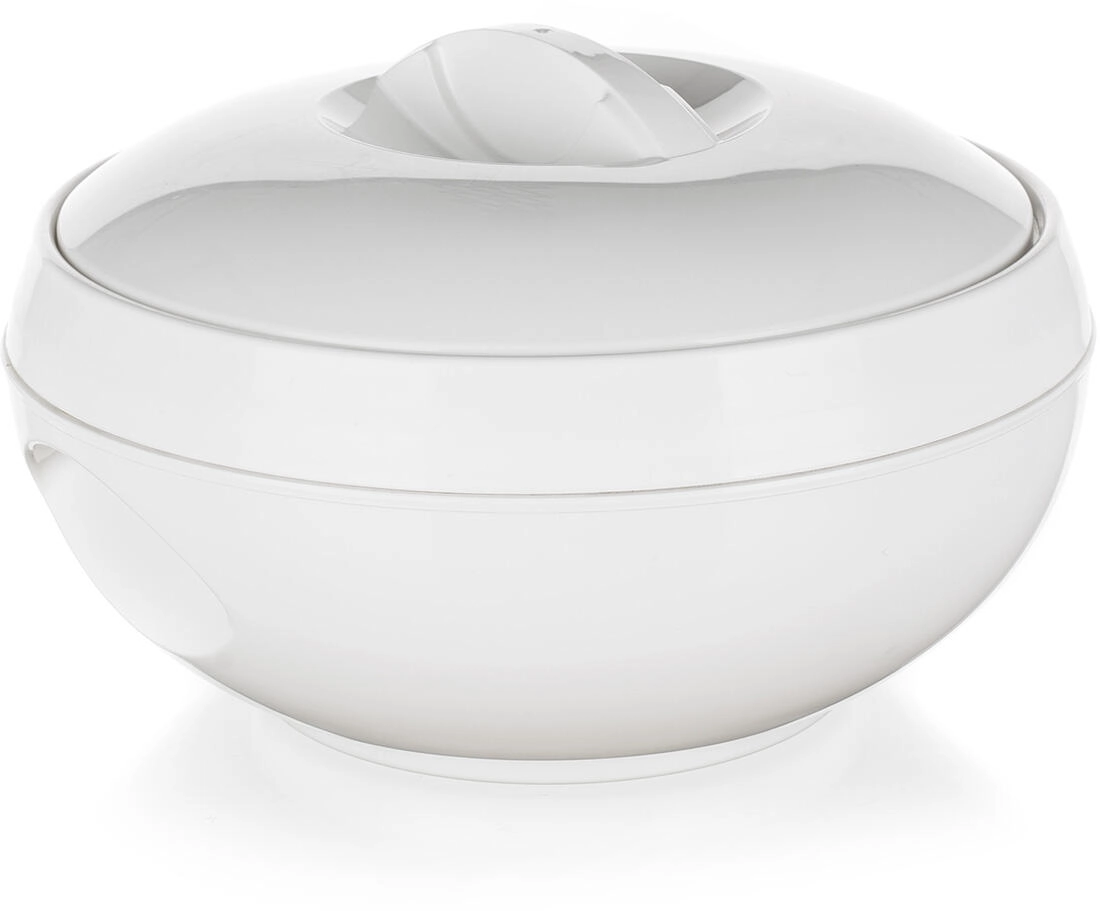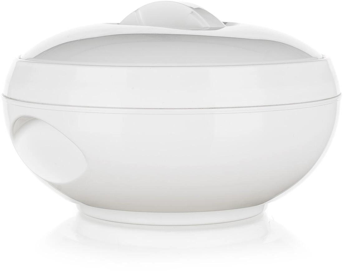 De thermoschaal AVANZA 0,6 l is een praktische hulp voor dagelijks tafelen. De combinatie van een roestvrijstalen binneninzet en PUR-isolatie tussen de wanden houdt soepen, sauzen en bijgerechten langer warm en smakelijk. De elegante witte uitvoering past in elke keuken en op elke feesttafel.