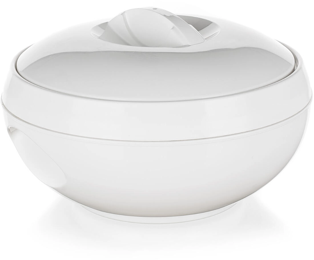 Dankzij de inhoud van 5 l bereid je moeiteloos porties voor meerdere personen. De lichte kunststof buitenkant in het wit ligt goed in de hand en is eenvoudig te onderhouden. Het deksel met praktische handgreep helpt warmteverlies te beperken en beschermt gerechten tijdens het transport.