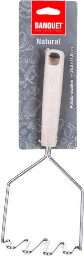 Ontdek de betrouwbare Natural aardappelstamper, ontworpen voor dagelijks comfort in zowel de thuiskeuken als de professionele keuken. De draadvormige kop van roestvrij staal zorgt voor gelijkmatig stampen en een egale puree, terwijl de ergonomische greep van polypropyleen met tarwezemelen prettig in de hand ligt.