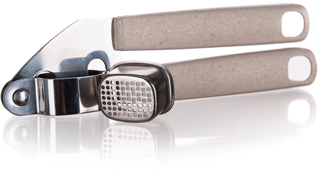 Praktische knoflookpers NATURAL van hoogwaardige roestvrij staal met een comfortabel ergonomisch handvat van polypropyleen en tarwezemelen. Biedt eenvoudig onderhoud dankzij het uitneembare rooster en is geschikt voor professioneel en huishoudelijk gebruik. Het eenvoudige, functionele design garandeert een lange levensduur en een tijdloze uitstraling.