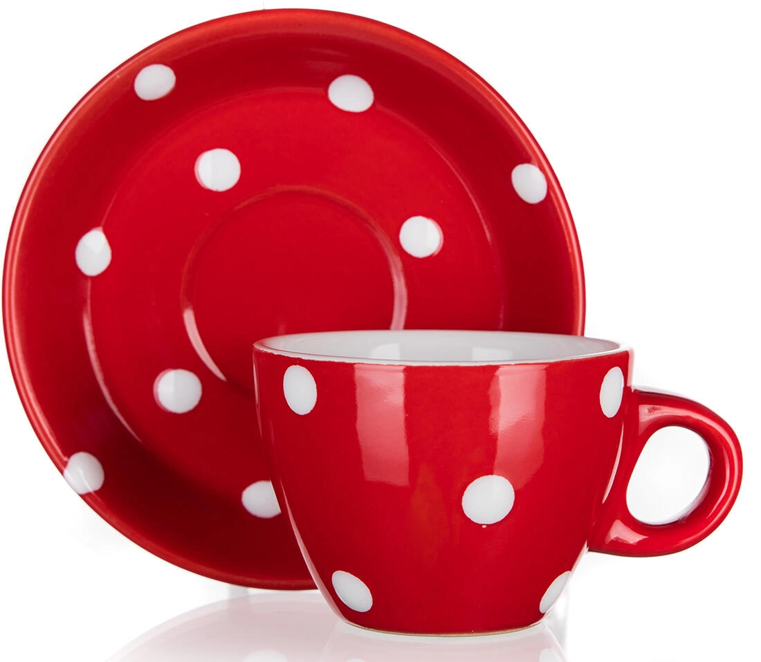 Keramische kop met schoteltje 100 ml met stippen – rood