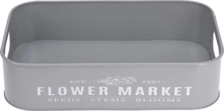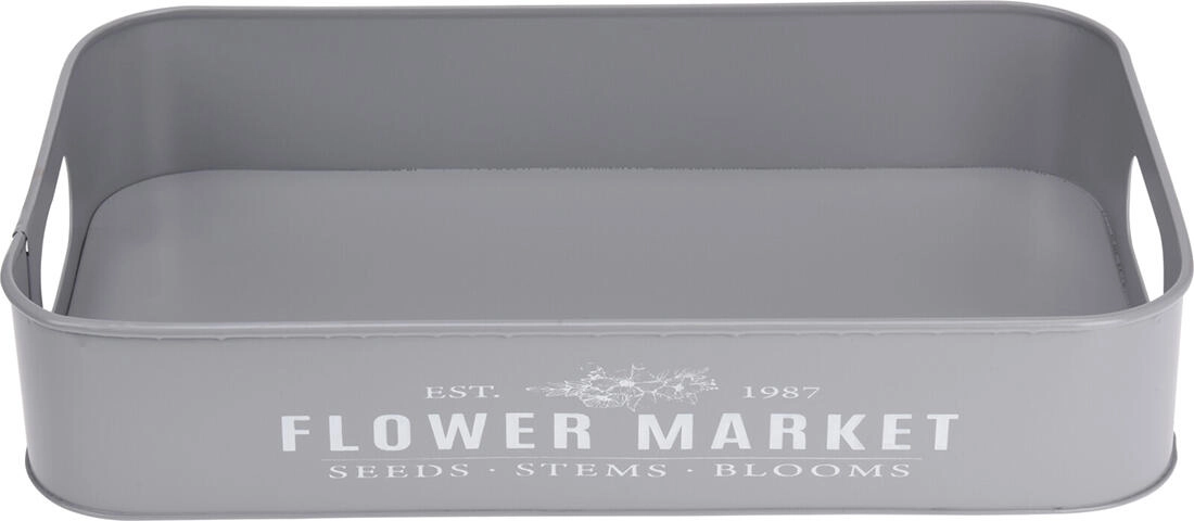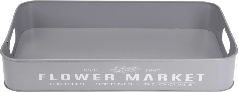 Ontdek de veelzijdige set van 3 metalen dienbladen met de ingetogen tekst Botanical Garden / Flower Market, een praktische én decoratieve aanwinst voor je huis. Gebruik ze voor stijlvol serveren van hapjes en drankjes, als opberg- en organisatiedienbladen of voor het schikken van decoraties op de eettafel, dressoir of het terras.