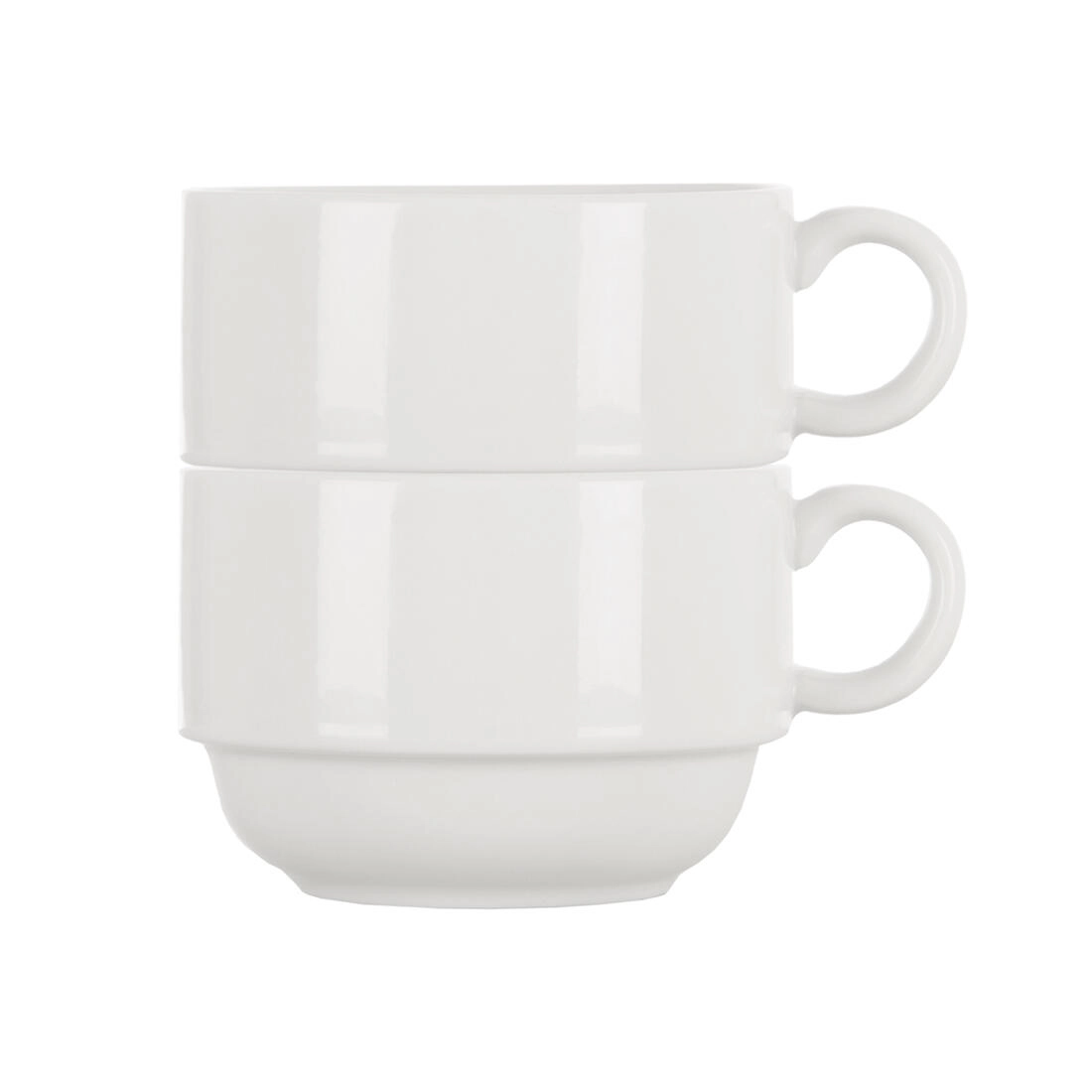 De mokken kunnen eenvoudig op elkaar worden gestapeld, zodat je kostbare ruimte bespaart in keukenkasten en horeca-omgevingen.