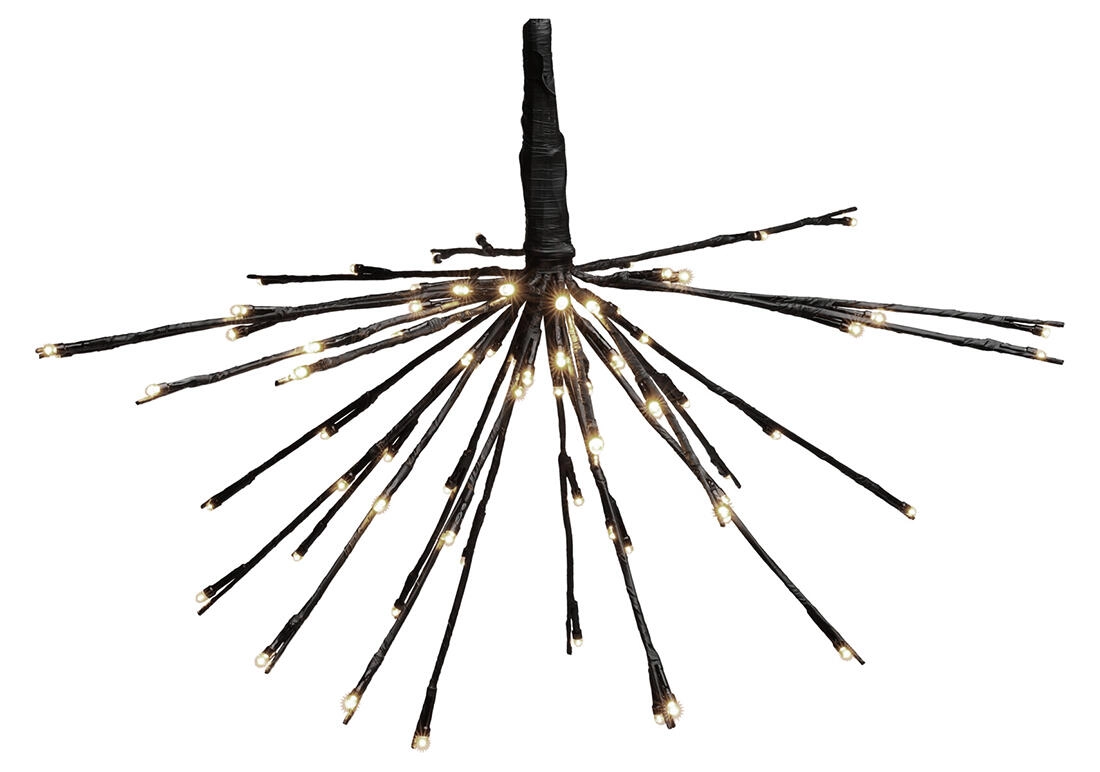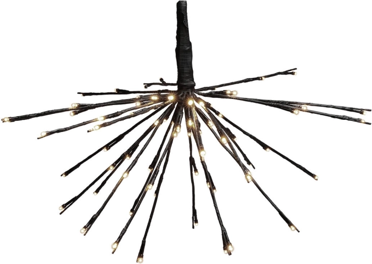 Stijlvolle hangende decoratie met een diameter van 45 cm die je interieur verlicht met 72 energiezuinige LED’s in warm wit. Het elegante zwarte design met 24 armen zorgt voor een moderne uitstraling, ideaal voor zowel dagelijks gebruik als een feestelijke sfeer.