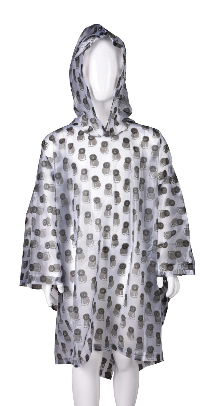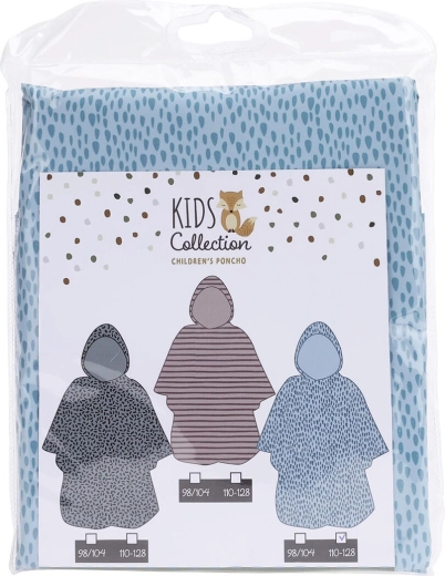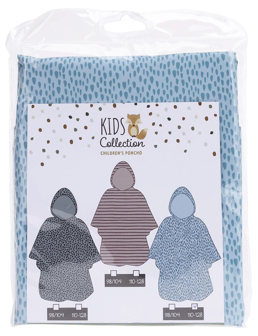 Lichte en compacte kinderregenjas in ponchostijl van duurzaam PES-materiaal, die kleding betrouwbaar beschermt tegen regen en wind. Dankzij de capuchon en de losse snit is hij eenvoudig over elke outfit aan te trekken en ideaal voor uitstapjes, naar school en op de speelplaats.