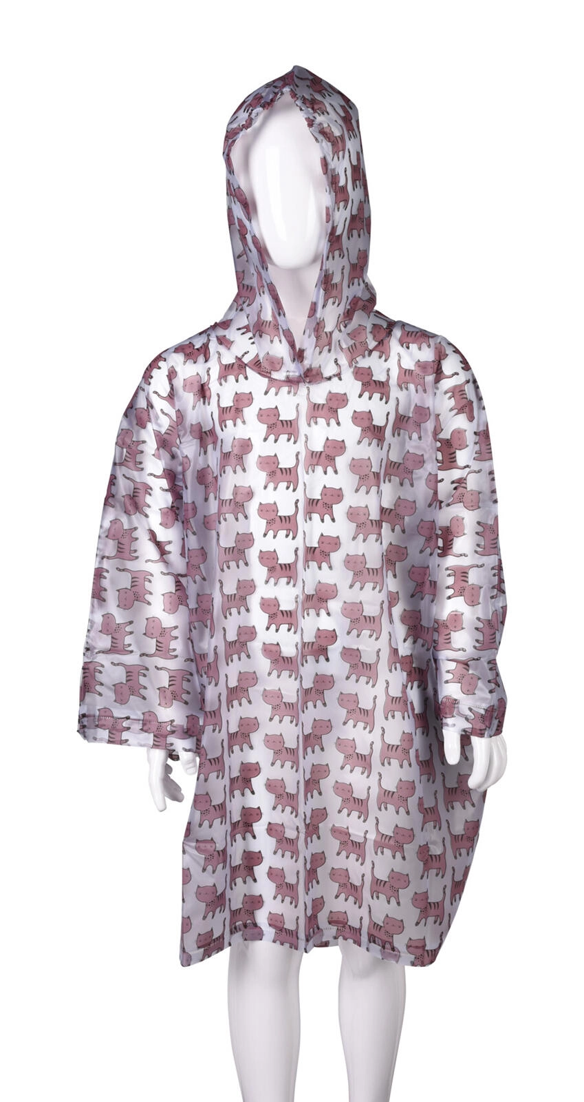 De praktische kinderregenponcho is gemaakt van licht en waterdicht PES, waardoor je kinderen droog blijven, zelfs tijdens buien. De losse, comfortabele snit bedekt het bovenste deel van de kleding uitstekend en de capuchon beschermt het hoofd tegen doorweken.
