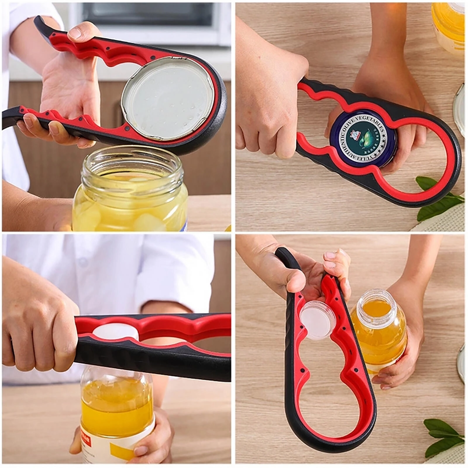 Praktische hulp voor elke keuken: een universele opener voor meerdere typen en maten doppen, van PET-flessen tot diverse twistdoppen. Maakt het openen van ketchup, sauzen, ingemaakt voedsel en dranken moeiteloos en zonder wegglijden.