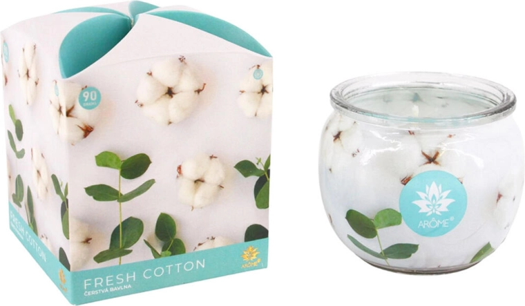 Deze elegante ARÔME geurkaars in glas brengt de frisse geur van Fresh Cotton, die een sfeer van zuiverheid en comfort oproept. Dankzij het praktische formaat van 90 g is ze ideaal voor de woonkamer, slaapkamer en badkamer, waar ze zorgt voor een aangename, niet-opdringerige geur.