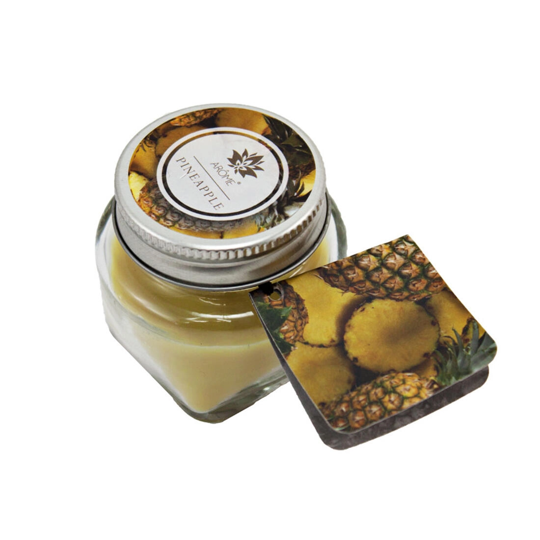 Deze kleine geurkaars in glas verwent met een intense fruitige geur en het warme licht van de vlam. Dankzij het praktische metalen deksel behoudt hij het aroma tussen de gebruiksmomenten en past hij stijlvol in elk interieur.