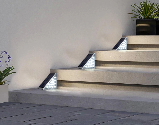 Praktische zonne-stepspot met 13 LED-punten die helder wit licht biedt voor veilig bewegen na het donker. Dankzij de zonnevoeding zijn er geen kabels of complexe installatie nodig en is het direct klaar voor gebruik.