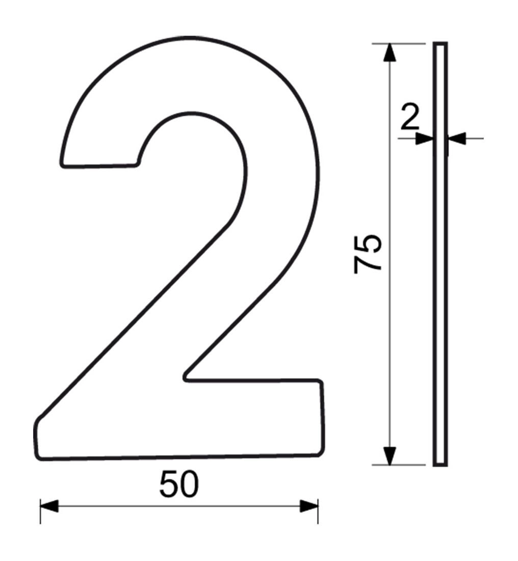 Elegant huisnummer 2 met een hoogte van 75 mm, gemaakt van hoogwaardig roestvrij staal met een moderne matzwarte afwerking. Dankzij het platte 2D-ontwerp past het perfect bij de gevel en is het goed leesbaar vanaf de straat.