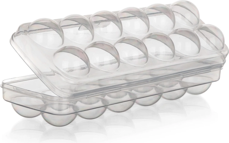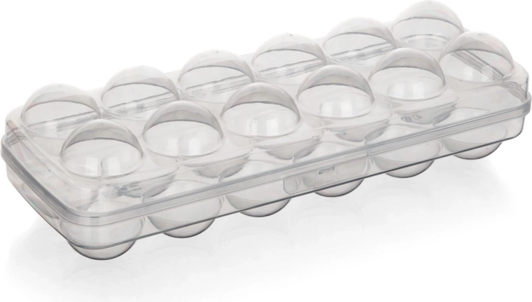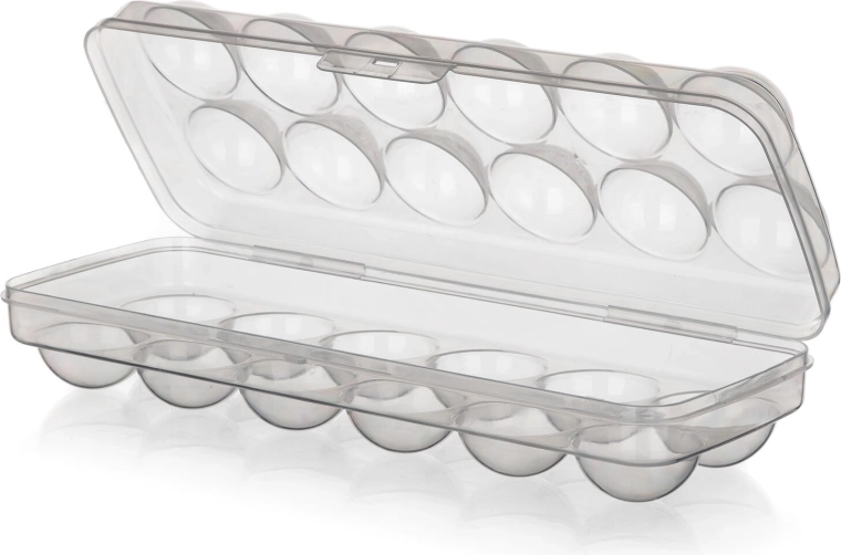 Deze compacte doos biedt plaats aan maximaal 12 eieren en dankzij het transparante ontwerp heb je hoeveelheid en versheid altijd in het oog. Het stevige deksel met vergrendeling houdt alles op zijn plaats, voorkomt ongewenst openen en beschermt de eieren bij hantering en vervoer.