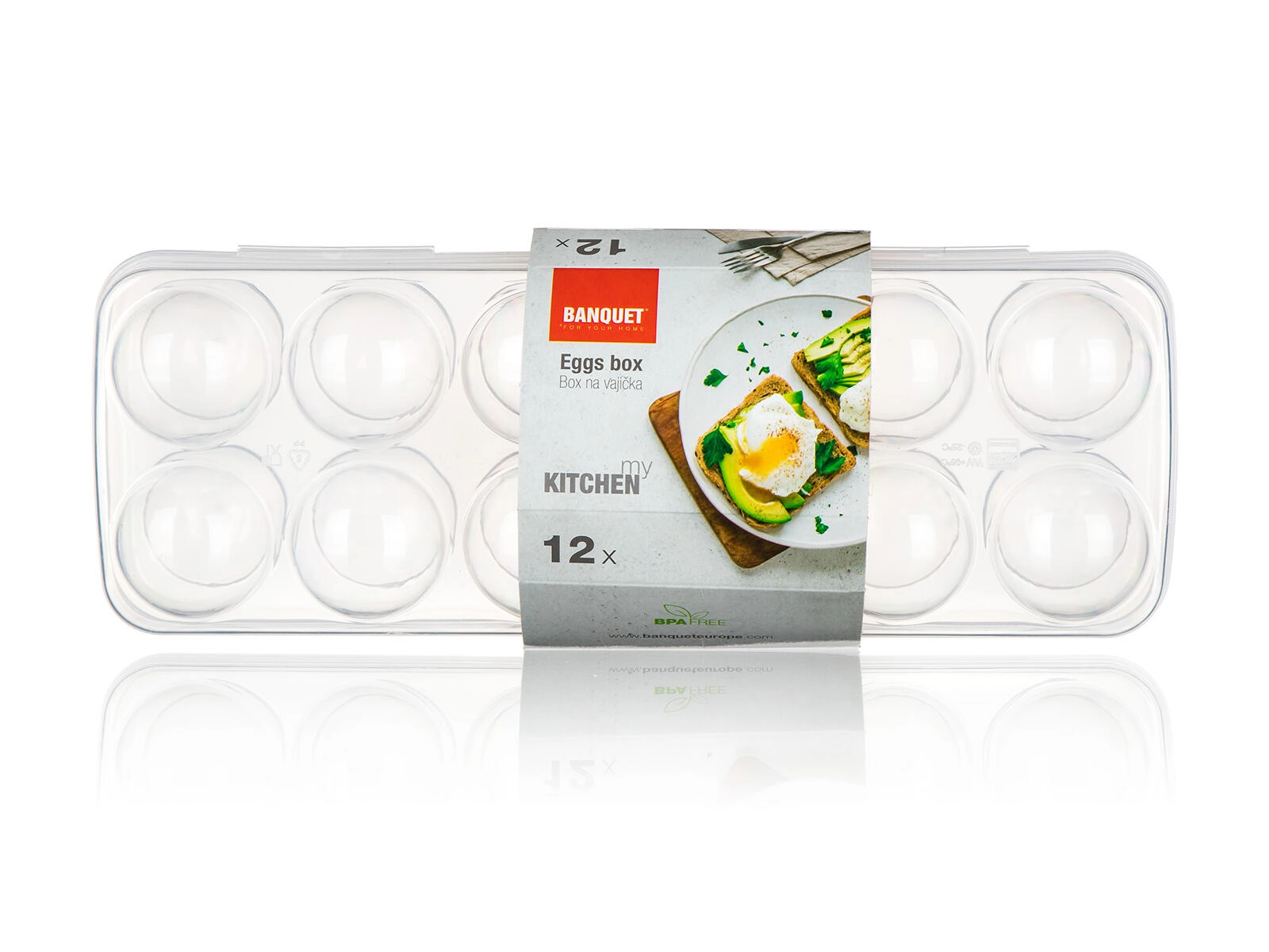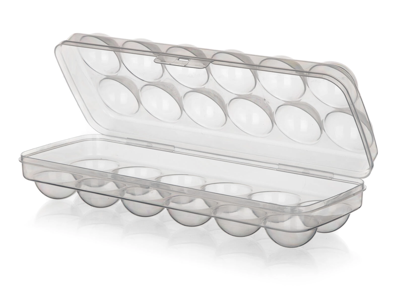 Het stevige deksel met sluitsysteem voorkomt onbedoeld openen en houdt de eieren schoon en veilig.