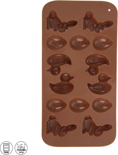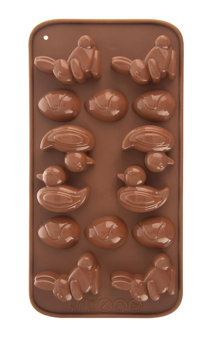 Siliconen mal Pasen – konijntjes, eendjes en eitjes, 14 stuks, bruin