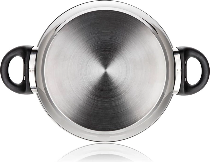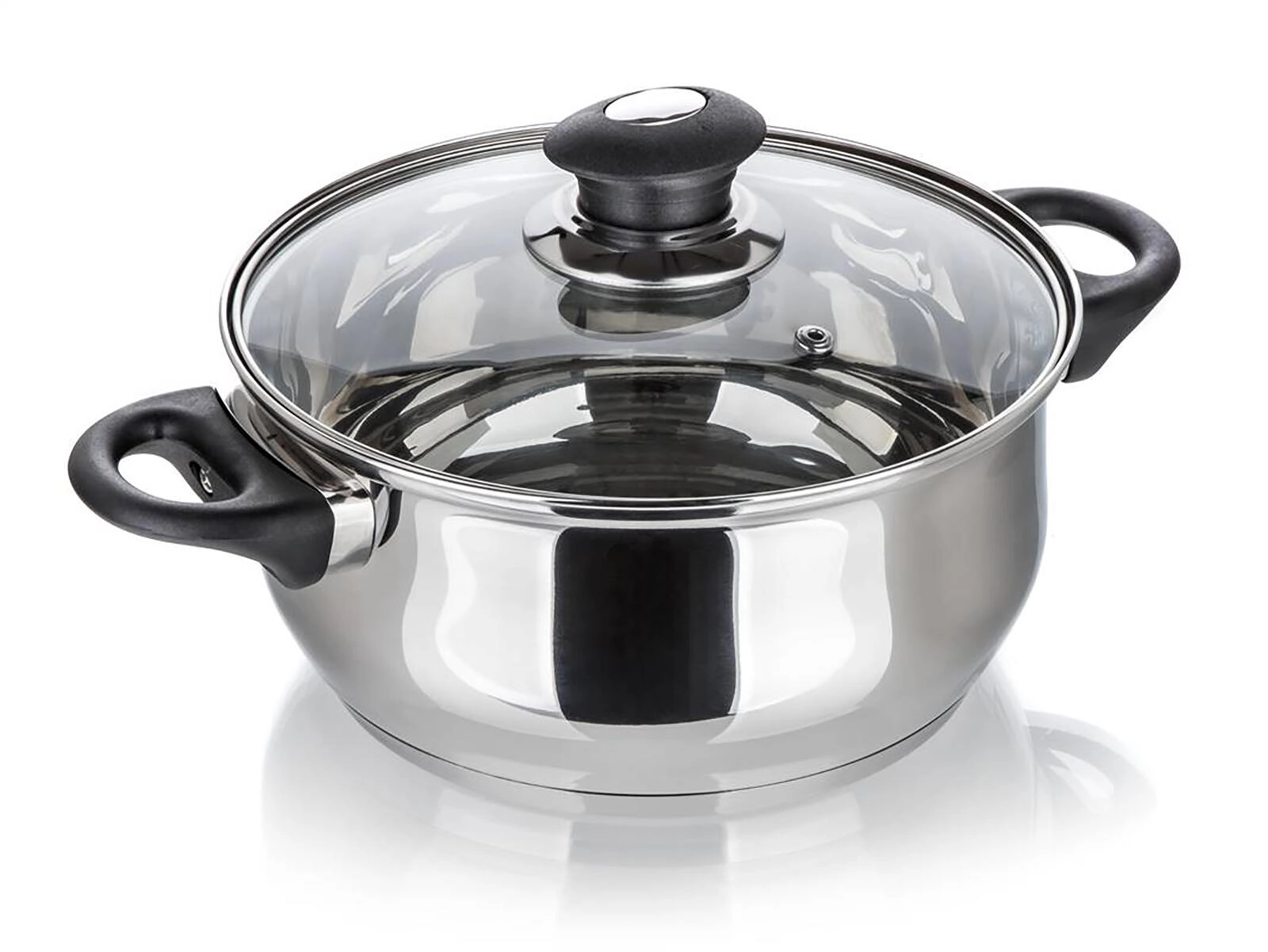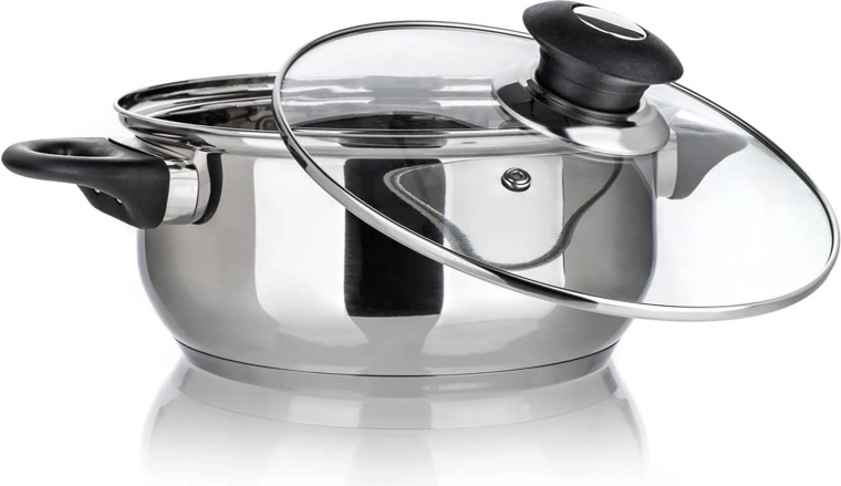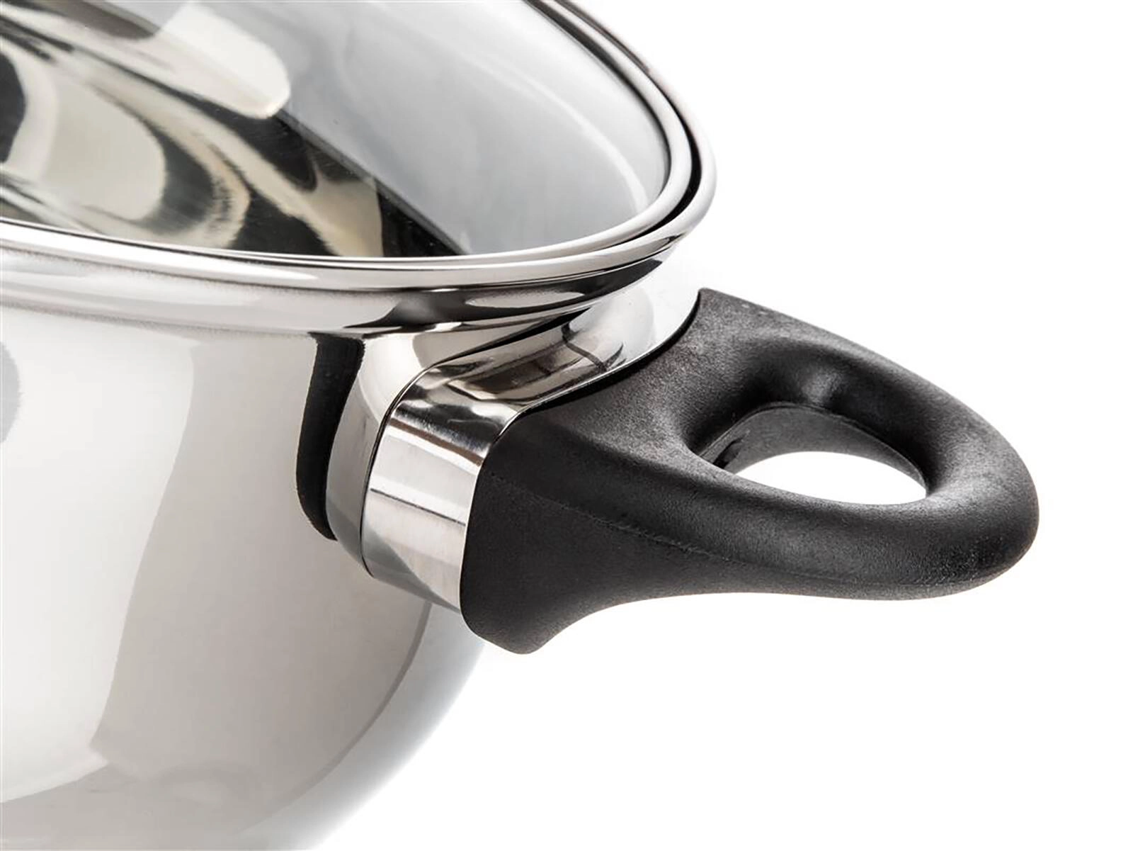 De roestvrijstalen pan Super Value combineert veelzijdig gebruik met betrouwbare prestaties. Dankzij het glazen deksel heb je het kookproces volledig onder controle, terwijl de robuuste roestvrijstalen body met glanzende afwerking je keuken een elegante look geeft. Ergonomische bakelieten handgrepen en knop zorgen voor een veilige en comfortabele grip, ook bij hogere temperaturen.
