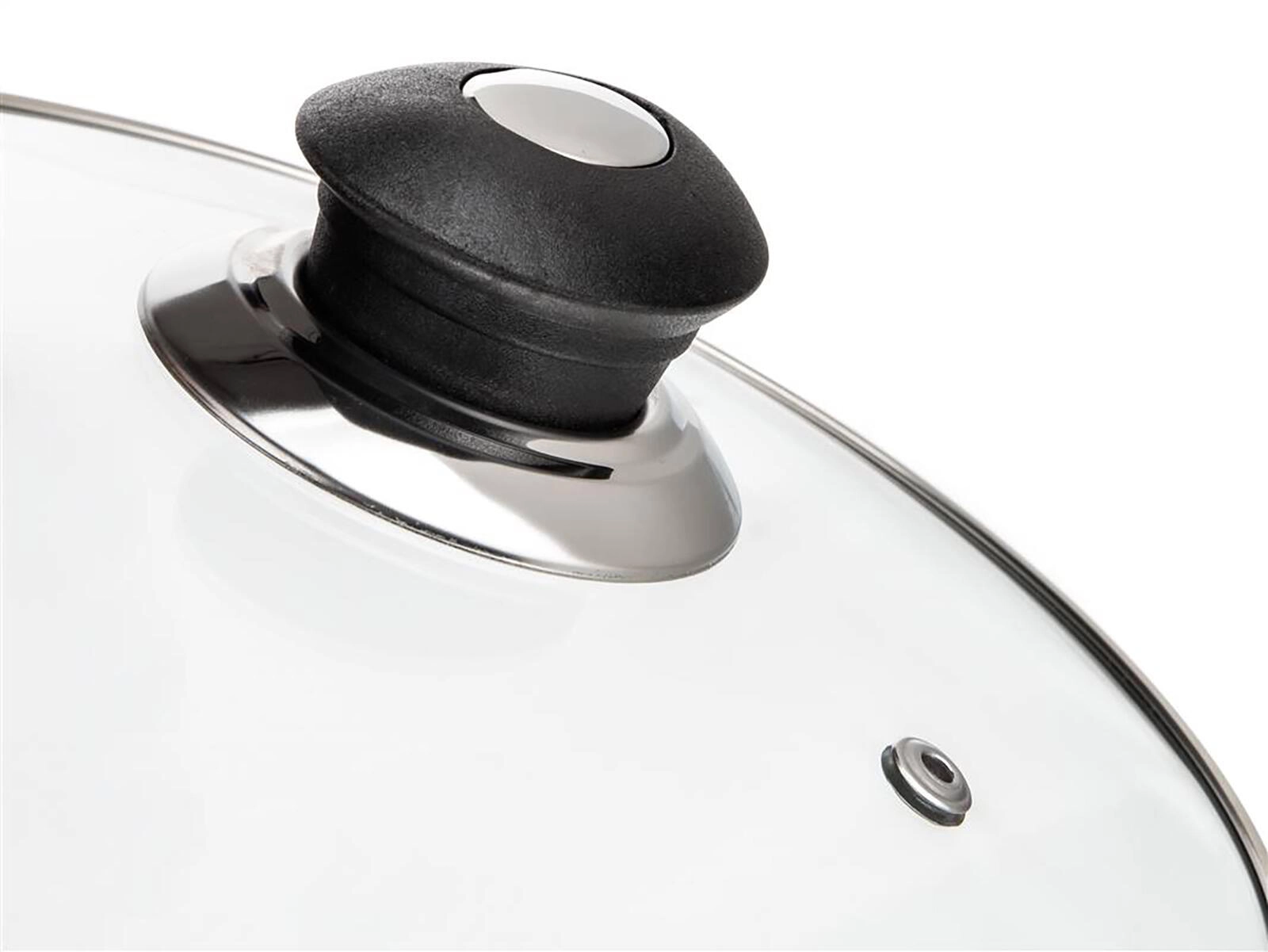 Het transparante deksel met stoomventiel laat je meekijken zonder het op te tillen, waardoor warmte en energie worden bespaard.