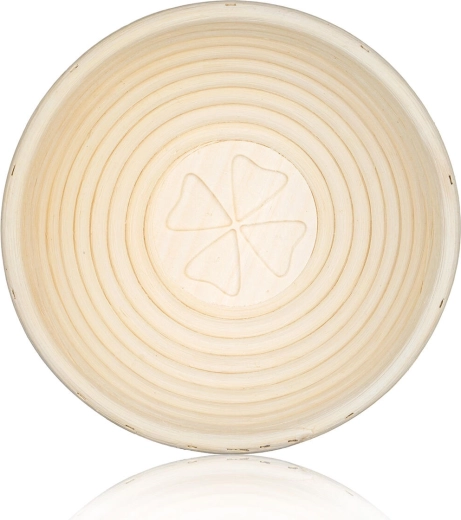 Deze ronde rijsmand van natuurlijk rotan is ideaal voor zowel thuisbakkers als professionals. Dankzij de spiraalvormige constructie ondersteunt hij een gelijkmatige rijs, voert overtollig vocht af en helpt een stevige, regelmatige broodvorm te creëren. Het speciale klaverdecor op de bodem maakt een elegant motief op de broodkorst.