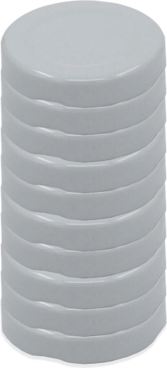 Praktische Twist-weckdeksels met een diameter van 43 mm in witte kleur, ideaal voor het veilig afsluiten van potten. Geschikt voor alle soorten voedingsmiddelen en wecken tot 100 °C. De verpakking bevat 10 stuks en is ook geschikt voor vlees.
