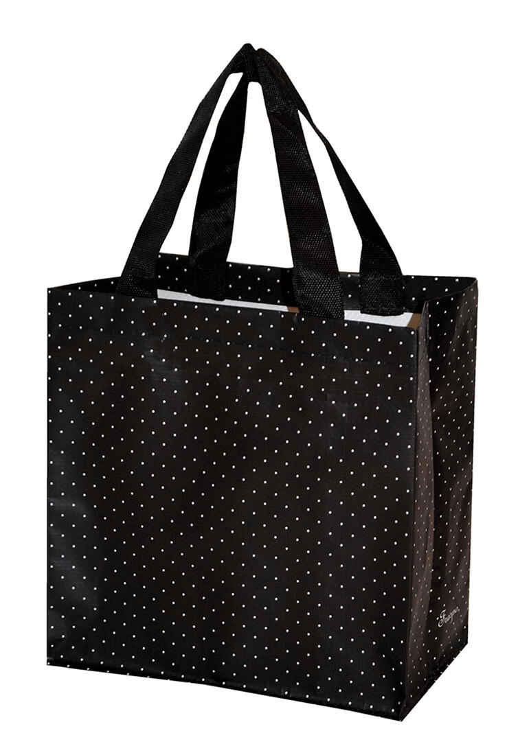 Deze stijlvolle tas met zwart-wit stippenmotief is ideaal voor dagelijkse boodschappen en snelle boodschapjes. Dankzij het stevige materiaal van geweven gelamineerd polypropyleen heeft hij een draagvermogen tot 10 kg, terwijl hij licht van gewicht blijft en een lange levensduur heeft. De compacte afmetingen van 27 × 27 × 15 cm en een inhoud van 10 l zorgen ervoor dat hij gemakkelijk in een kast, auto of handtas past.