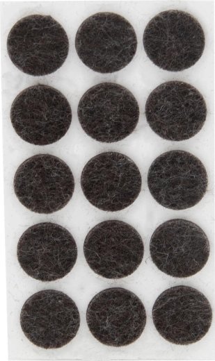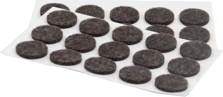 Praktische vilten pads beschermen je vloeren tegen krassen en deuken door meubels. Ze zijn eenvoudig aan te brengen, blijven betrouwbaar zitten en dempen tegelijk het geluid bij het verschuiven van stoelen en tafels. Ideaal voor harde vloeren zoals hout, laminaat of vinyl. Vloerbescherming, zelfklevende montage, geluidsdemping, bruine kleur, diameter 16 mm, verpakking 30 stuks.