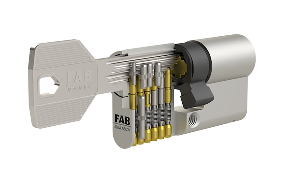 Professionele FAB-cilinder voor deuren met eisen aan het hoogste beveiligingsniveau. Gecertificeerd veiligheidsklasse 4 (RC4/BT4), boorbeveiliging van zowel behuizing als kern, 6-stift vergrendelingssysteem en sleutels beschermd door een veiligheidskaart garanderen langdurige, betrouwbare beveiliging van appartementen, huizen en commerciële objecten.