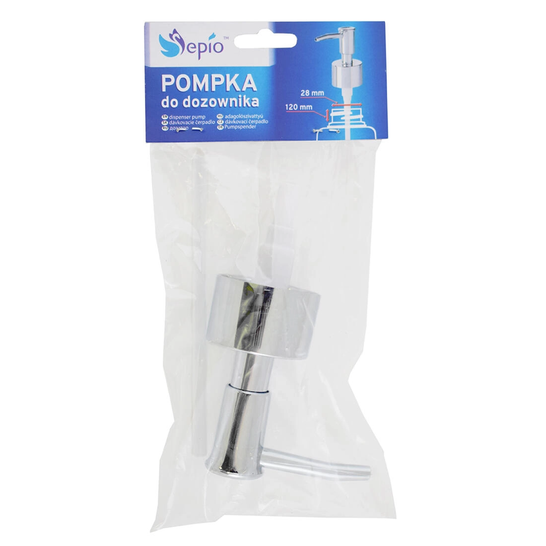 Het elegante verchroomde oppervlak past zowel in een moderne badkamer als keuken en de lange aanzuigbuis zorgt ervoor dat je de inhoud van het flesje tot de laatste druppel benut. Een praktische oplossing wanneer de originele pomp beschadigd raakt of niet meer doseert.